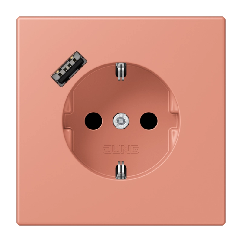 JUNG wandcontactdoos randaarde Safety+ met USB-A Les Couleurs l'ocre rouge moyen 233 (LC 1520-18 A 233)