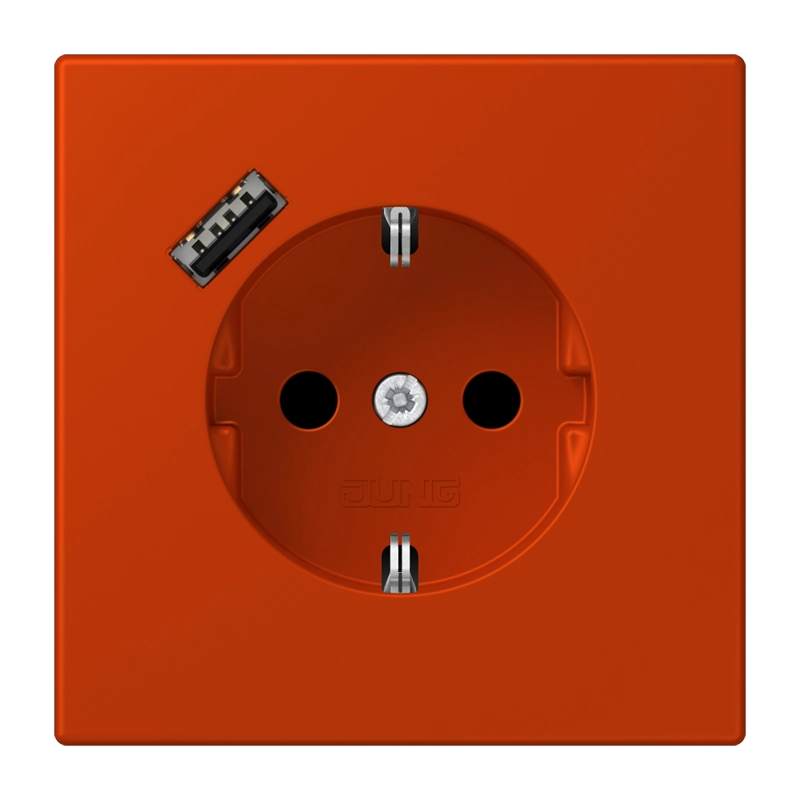 JUNG wandcontactdoos randaarde Safety+ met USB-A Les Couleurs rouge vermillon 59 244 (LC 1520-18 A 244)