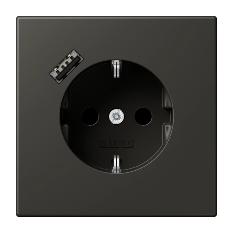 JUNG wandcontactdoos randaarde Safety+ met USB-A Les Couleurs ombre naturelle 59 259 (LC 1520-18 A 259)