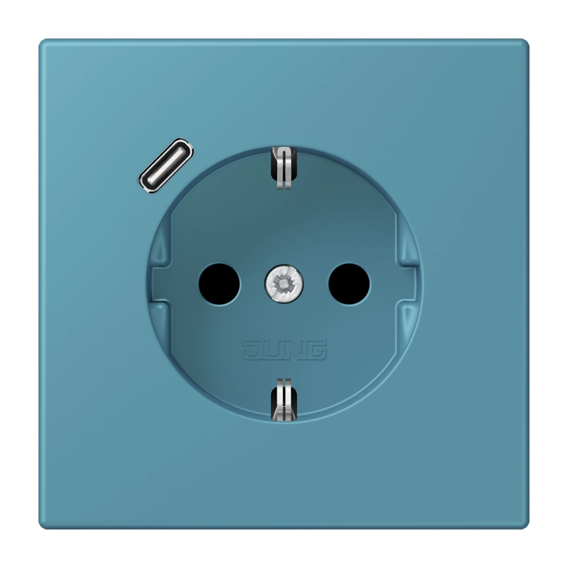 JUNG wandcontactdoos randaarde Safety+ met USB-C Les Couleurs ceruleen vif 212 (LC 1520-18 C 212)