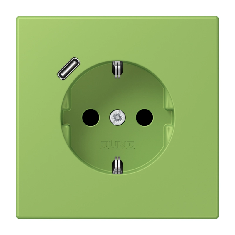 JUNG wandcontactdoos randaarde Safety+ met USB-C Les Couleurs vert 31 220 (LC 1520-18 C 220)