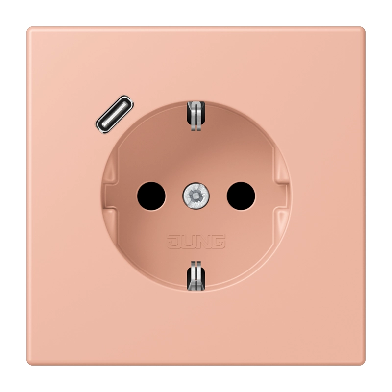 JUNG wandcontactdoos randaarde Safety+ met USB-C Les Couleurs rose clair 231 (LC 1520-18 C 231)