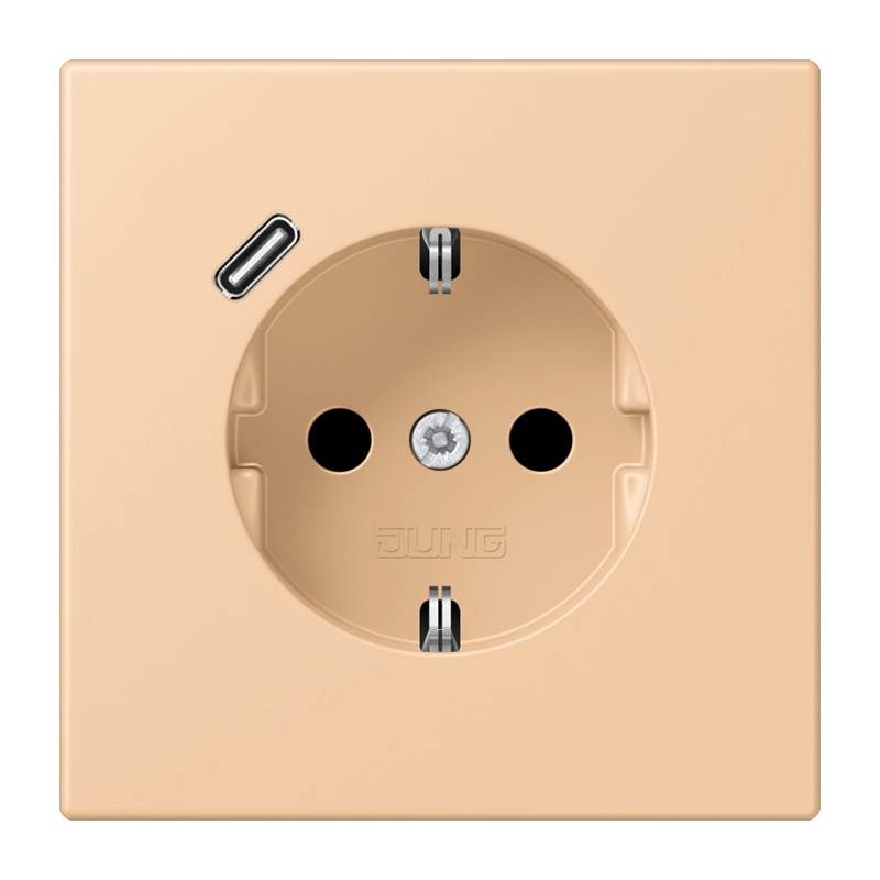 JUNG wandcontactdoos randaarde Safety+ met USB-C Les Couleurs terre sienne claire 31 237 (LC 1520-18 C 237)