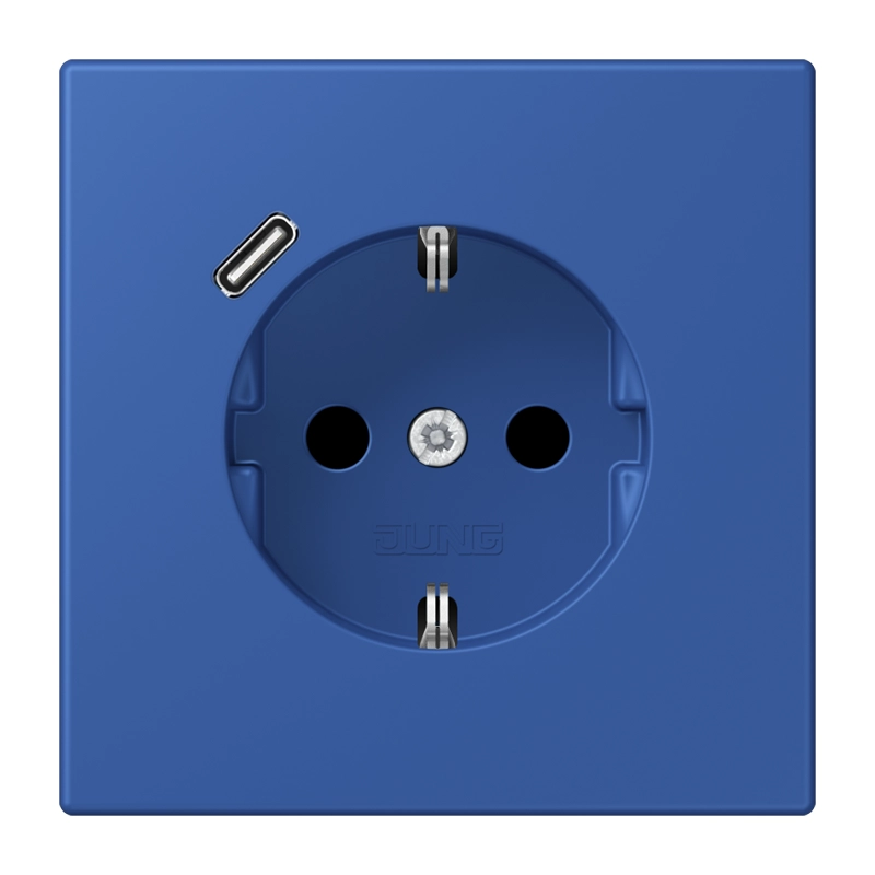 JUNG wandcontactdoos randaarde Safety+ met USB-C Les Couleurs bleu outremer 59 253 (LC 1520-18 C 253)