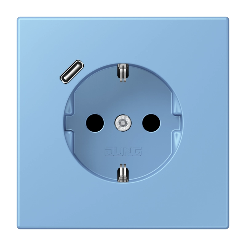 JUNG wandcontactdoos randaarde Safety+ met USB-C Les Couleurs bleu ceruleen 59 256 (LC 1520-18 C 256)