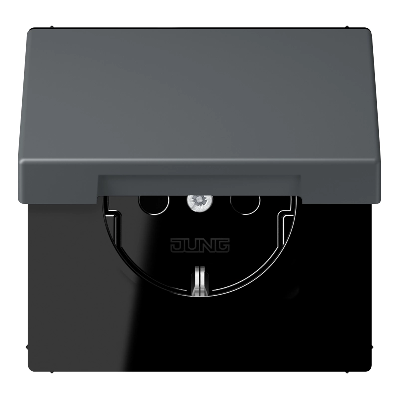 JUNG wandcontactdoos randaarde Safety+ met klapdeksel Les Couleurs gris fonce 31 202 (LC 1520 BFKIKL 202)