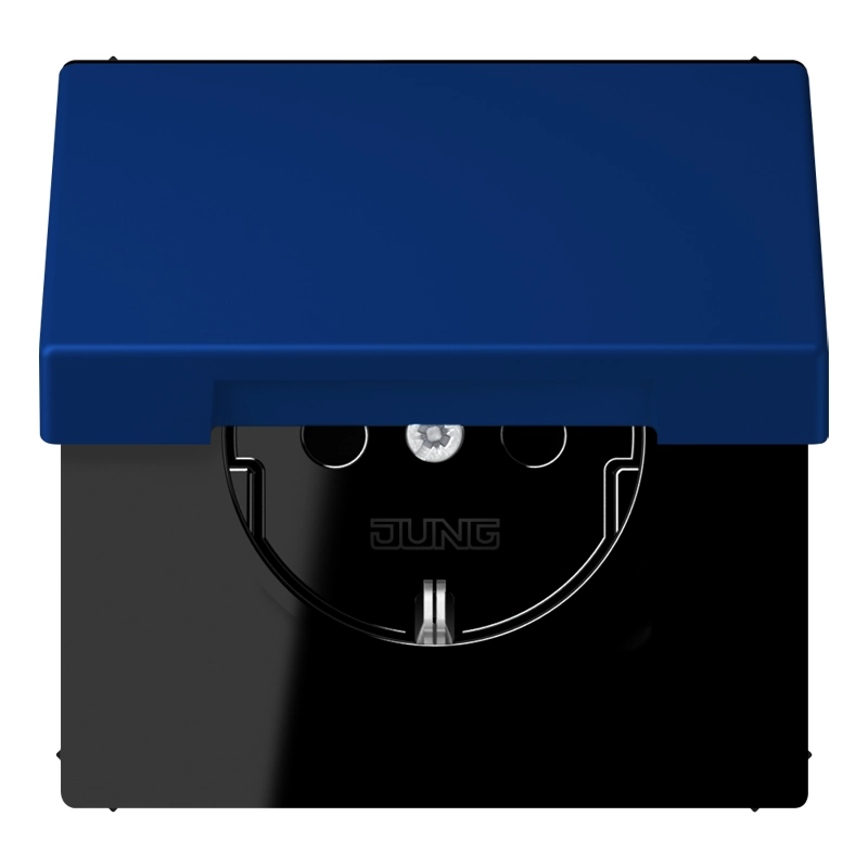 JUNG wandcontactdoos randaarde Safety+ met klapdeksel Les Couleurs bleu outremer fonce 261 (LC 1520 BFKIKL 261)