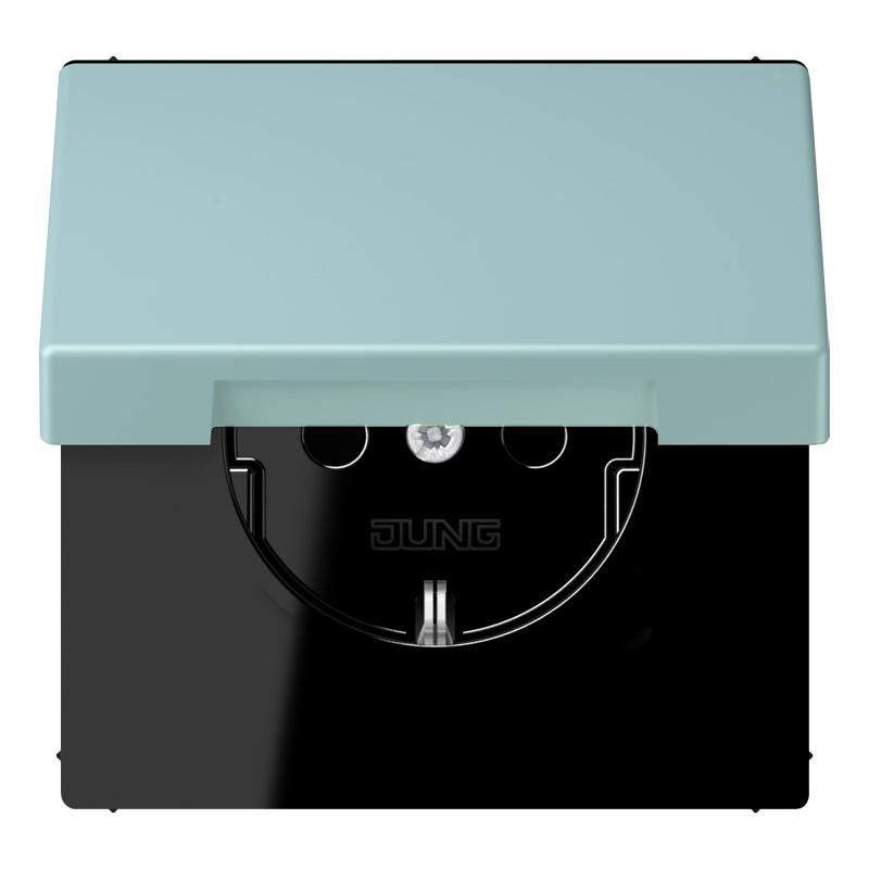 JUNG wandcontactdoos randaarde met klapdeksel Les Couleurs ceruleen clair 214 (LC 1520 BFKL 214)