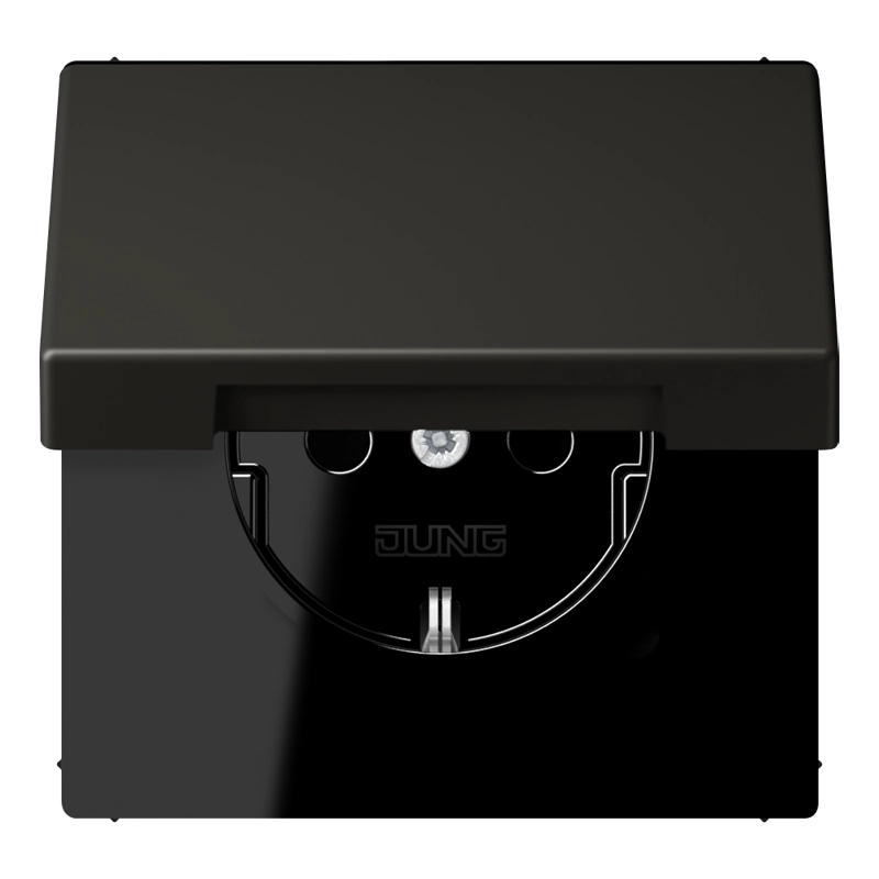 JUNG wandcontactdoos randaarde met klapdeksel Les Couleurs ombre naturelle 59 259 (LC 1520 BFKL 259)