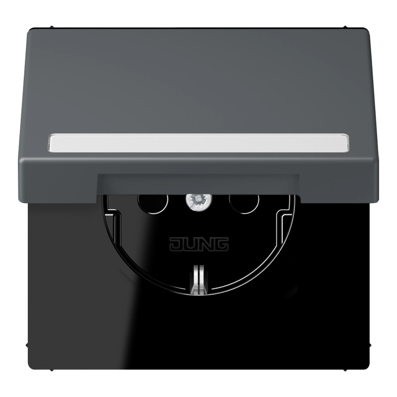 JUNG wandcontactdoos randaarde Safety+ klapdeksel Les Couleurs gris fonce 31 202 (LC 1520 BFNAKL 202)