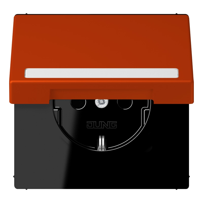 JUNG wandcontactdoos randaarde Safety+ klapdeksel Les Couleurs rouge vermillon 59 244 (LC 1520 BFNAKL 244)