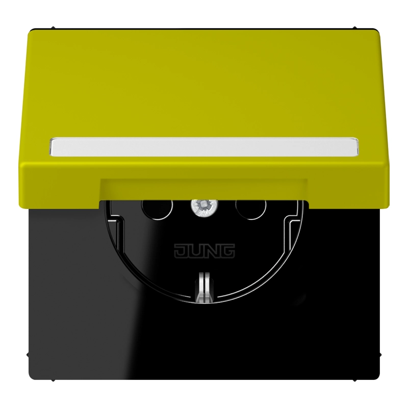 JUNG wandcontactdoos randaarde Safety+ klapdeksel Les Couleurs vert olive vif 249 (LC 1520 BFNAKL 249)