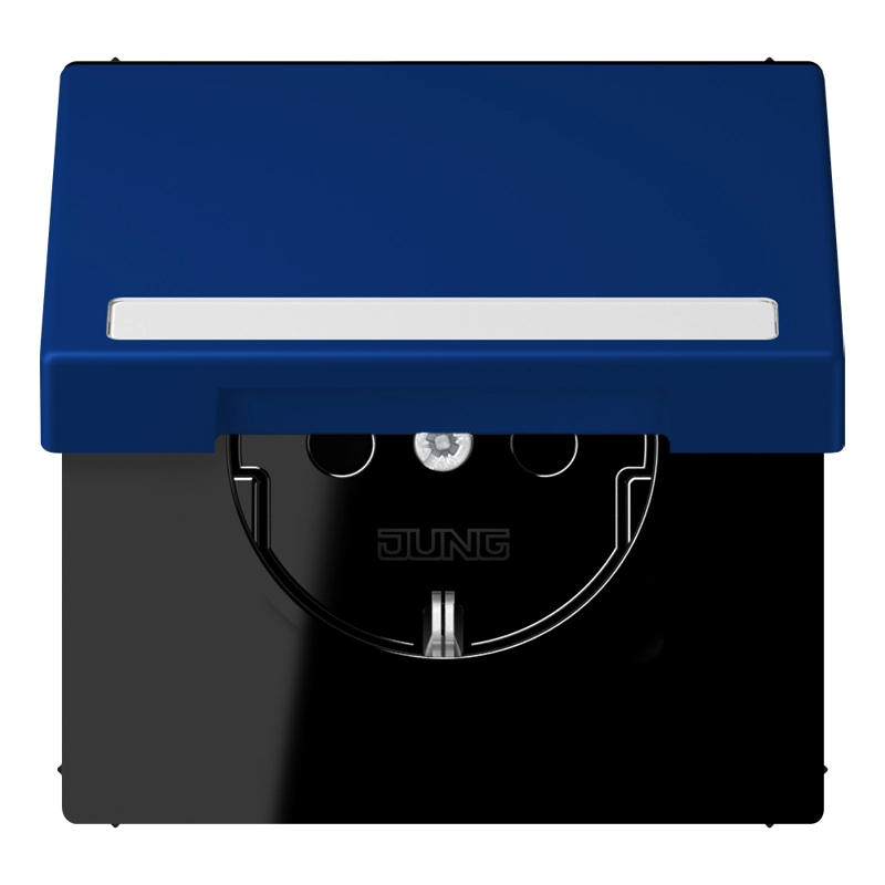 JUNG wandcontactdoos randaarde Safety+ klapdeksel Les Couleurs bleu outremer fonce 261 (LC 1520 BFNAKL 261)