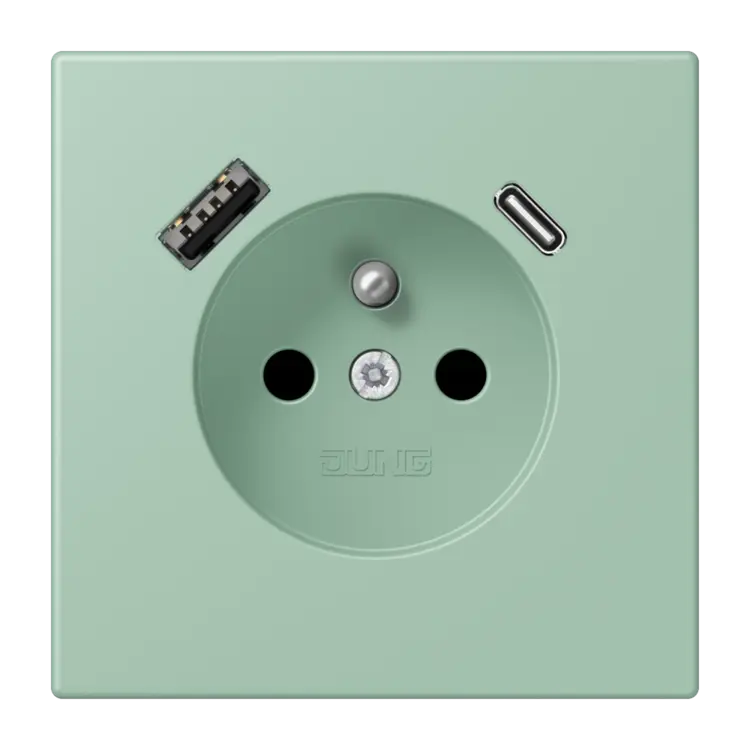 JUNG wandcontactdoos penaarde Safety+ met USB type A en C Les Couleurs vert anglais clair 217 (LC 1520 F-15 CA 217)