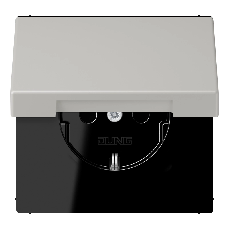 JUNG wandcontactdoos randaarde met klapdeksel Les Couleurs gris clair 31 205 (LC 1520 NBFKL 205)