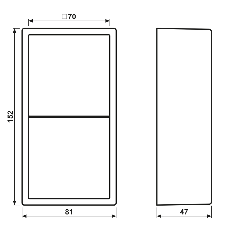 Tweevoudige opbouwbak met geïntegreerde vlamwerende bodemplaat en afdekraam, geschikt voor basiselementen met afdekkingen uit de LS-range (zie onderstaande lijst met uitgezonderde artikelen). Afmetingen (b x h x d): 152 x 81 x 47 mm. Maximale inbouwdiepte: 34 mm.