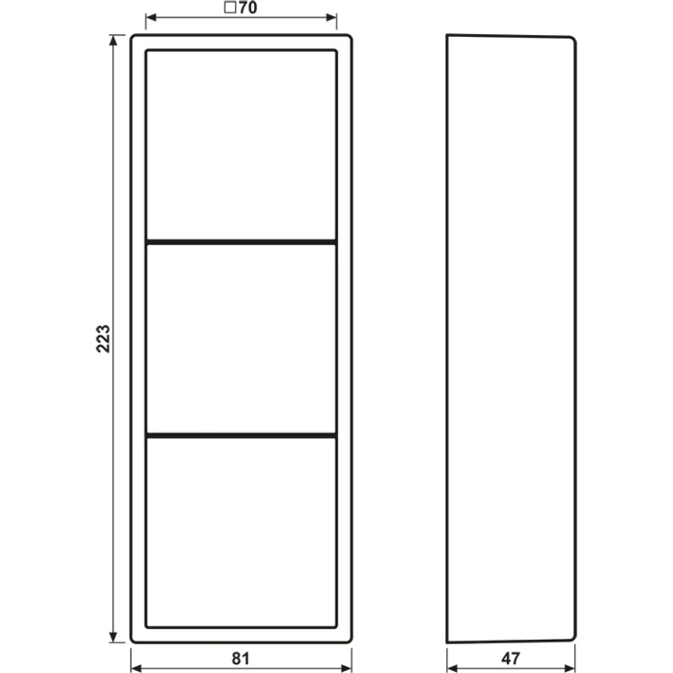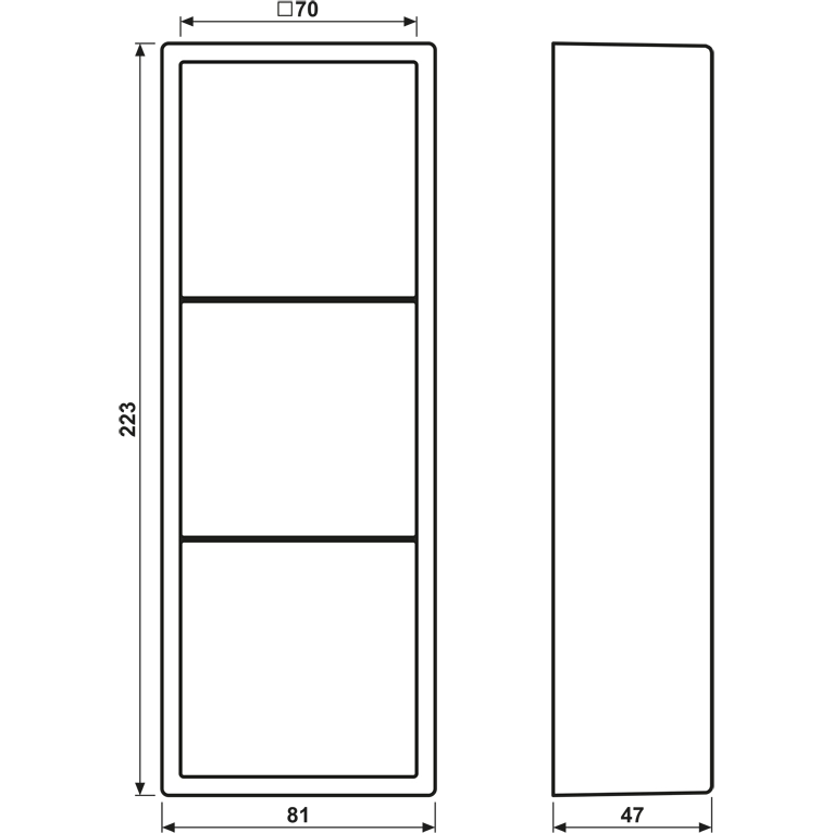 Drievoudige opbouwbak met geïntegreerde vlamwerende bodemplaat en afdekraam, geschikt voor basiselementen met afdekkingen uit de LS-range (zie onderstaande lijst met uitgezonderde artikelen). Afmetingen (b x h x d): 223 x 81 x 47 mm. Maximale inbouwdiepte: 34 mm.