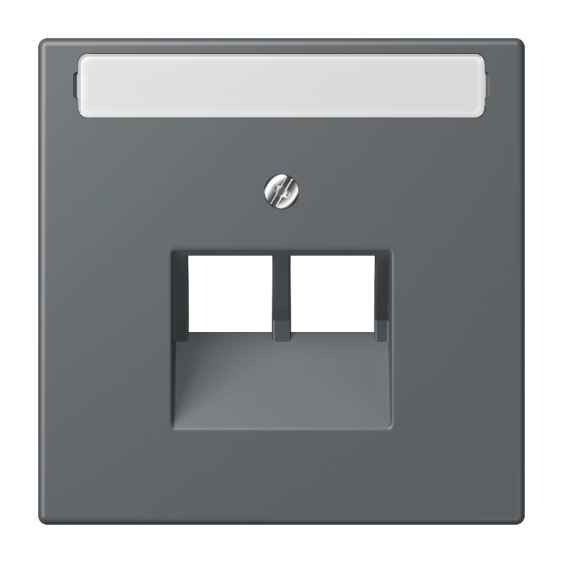 JUNG centraalplaat 2-voudig met tekstvenster tbv RJ45 wandcontactdoos Les Couleurs gris fonce 31 202 (LC 969-2 NAUA 202)