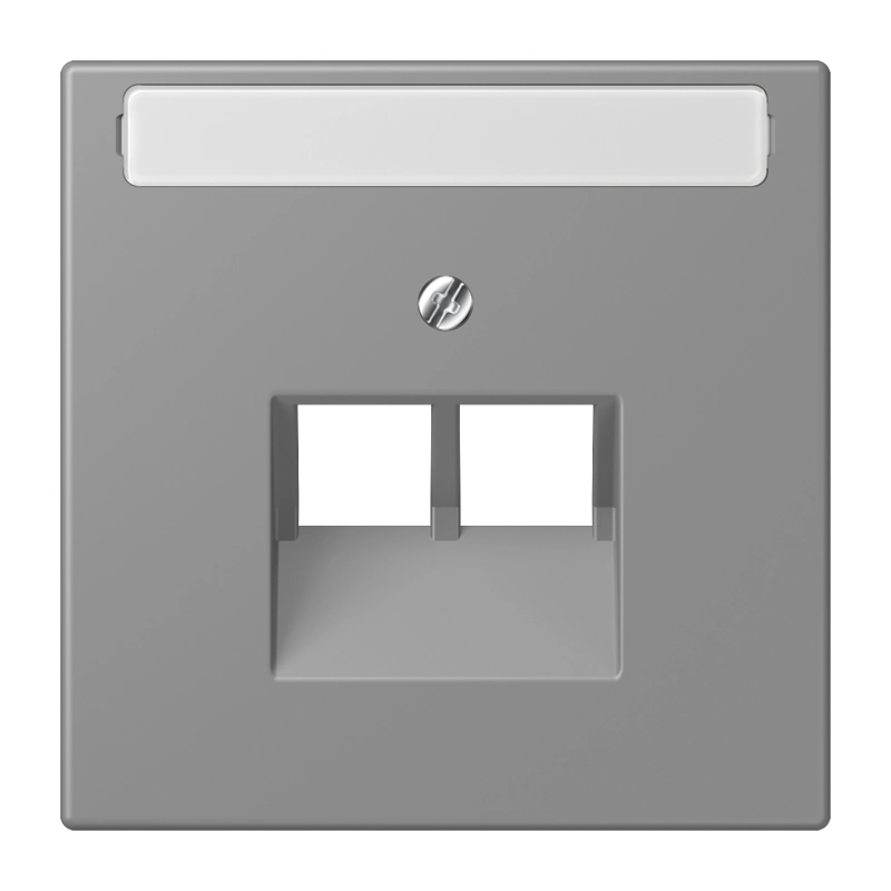 JUNG centraalplaat 2-voudig met tekstvenster tbv RJ45 wandcontactdoos Les Couleurs gris 31 203 (LC 969-2 NAUA 203)