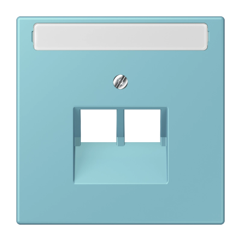 JUNG centraalplaat 2-voudig met tekstvenster tbv RJ45 wandcontactdoos Les Couleurs ceruleen moyen 213 (LC 969-2 NAUA 213)