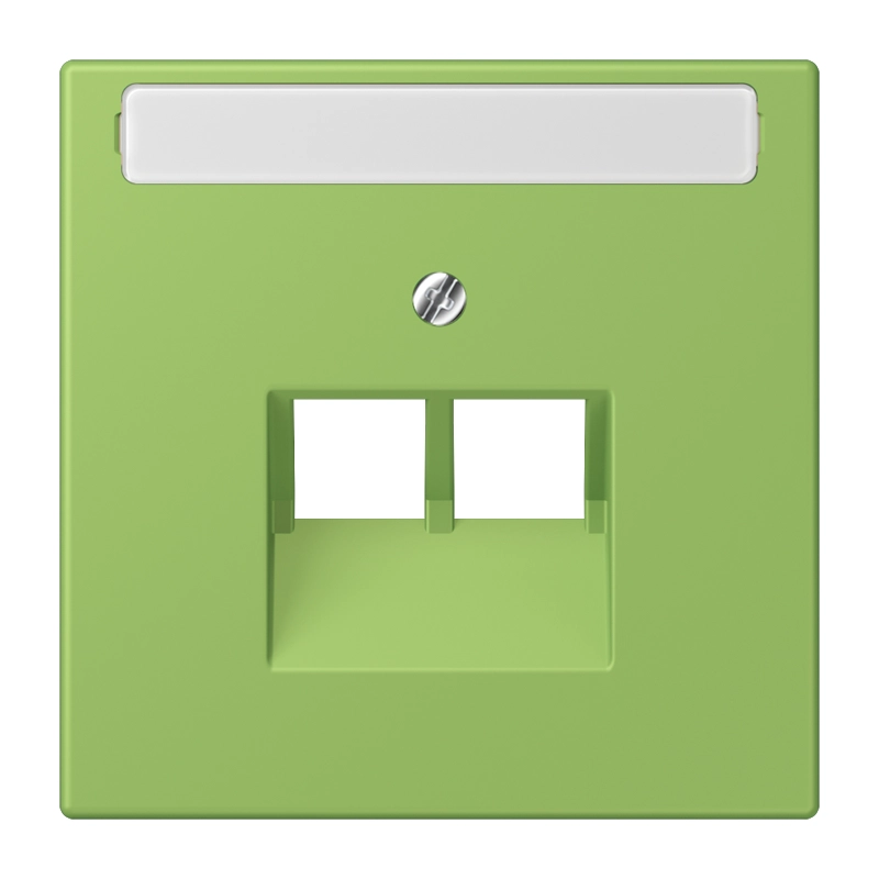 JUNG centraalplaat 2-voudig met tekstvenster tbv RJ45 wandcontactdoos Les Couleurs vert 31 220 (LC 969-2 NAUA 220)