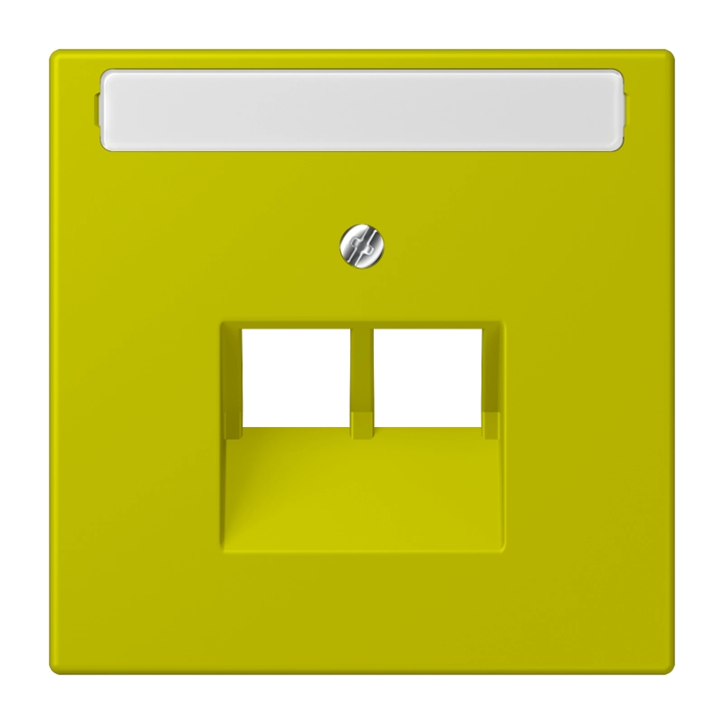 JUNG centraalplaat 2-voudig met tekstvenster tbv RJ45 wandcontactdoos Les Couleurs vert olive vif 249 (LC 969-2 NAUA 249)