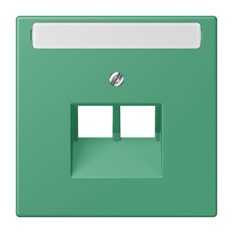 JUNG centraalplaat 2-voudig met tekstvenster tbv RJ45 wandcontactdoos Les Couleurs vert 59 250 (LC 969-2 NAUA 250)