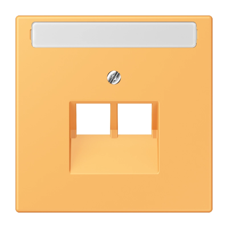 JUNG centraalplaat 2-voudig met tekstvenster tbv RJ45 wandcontactdoos Les Couleurs ocre jaune clair 254 (LC 969-2 NAUA 254)