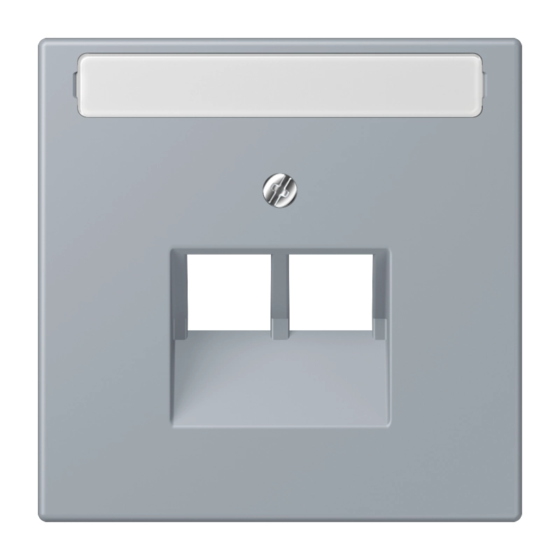 JUNG centraalplaat 2-voudig met tekstvenster tbv RJ45 wandcontactdoos Les Couleurs gris clair 59 257 (LC 969-2 NAUA 257)