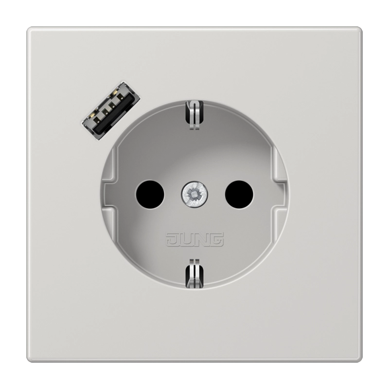 JUNG wandcontactdoos randaarde Safety+ met USB-A LS990 lichtgrijs (LS 1520-18 A LG)