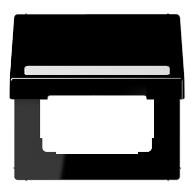 JUNG klapdeksel met tekstvenster voor wandcontactdoos en centraaldelen van 50 x 50 mm LS990 zwart glans (LS 990 BFNAKL SW)