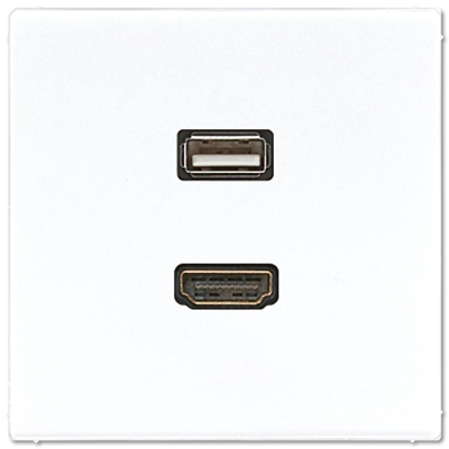 JUNG centraalplaat met draagring en 1 x USB-A en 1 x HDMI koppeling LS990 alpine wit (MA LS 1163 WW)