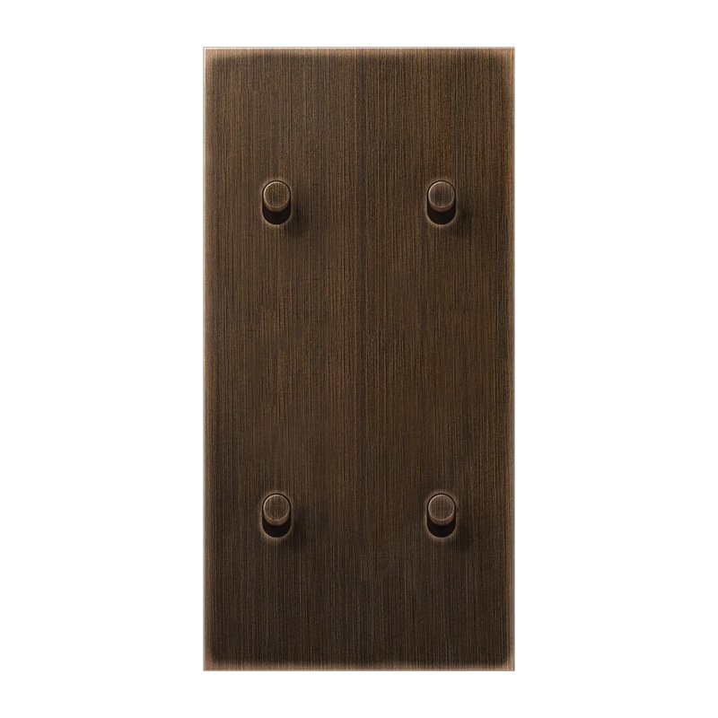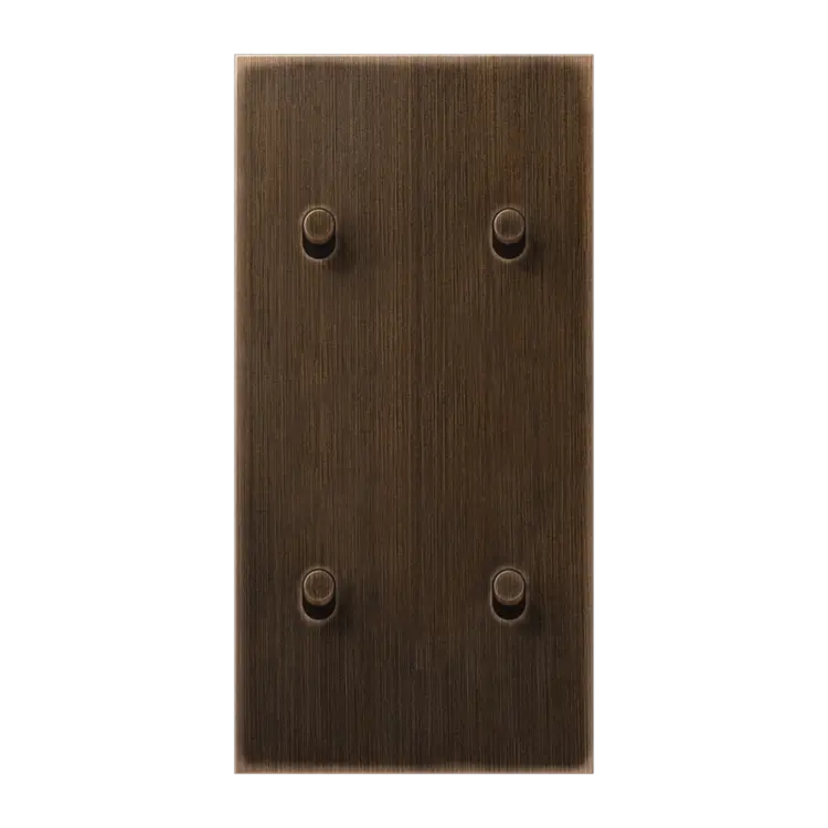 Afdekking (schakelwip) voor 2 x een dubbele tuimelschakelaar of tuimel-impulsdrukker uit de LS 1912 serie, verticaal gemonteerd. Met 2 x 2 tuimelhevels cilinder, messing antiek.