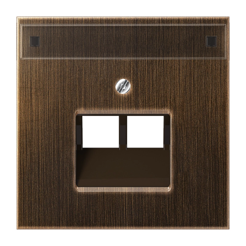 JUNG centraalplaat 2-voudig met tekstvenster tbv RJ45 wandcontactdoos LS990 messing antiek (ME 2969-2 NAUA AT)