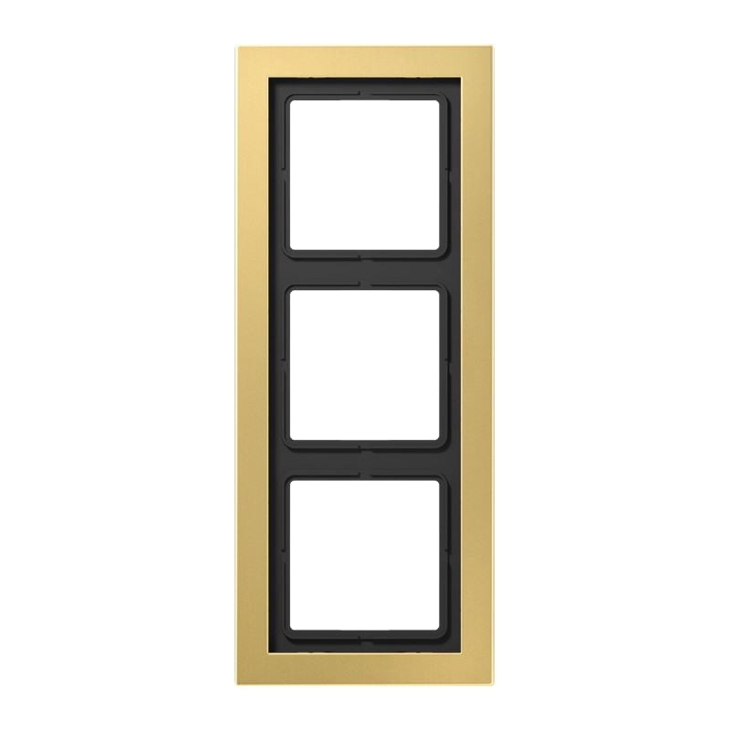Drievoudig afdekraam, voor horizontale en verticale montage. Opstaande rand aan de achterzijde creëert een subtiele schaduwrand en zwevend effect. Afmetingen: 96 x 238 x 11 mm. Serie: LS DESIGN, kleur: messing klassiek (metaaluitvoering). Meer informatie »