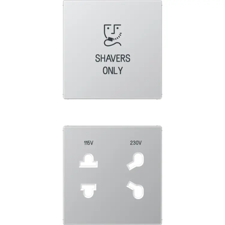 Afdekking/centraalplaat voor Shavers only scheerwandcontactdoos. Gemaakt van Duroplast: zeer krasvast en glanzend. Exclusief binnenwerk (SO 7522 EINS) en afdekraam. Serie: A-range, kleur: aluminium.